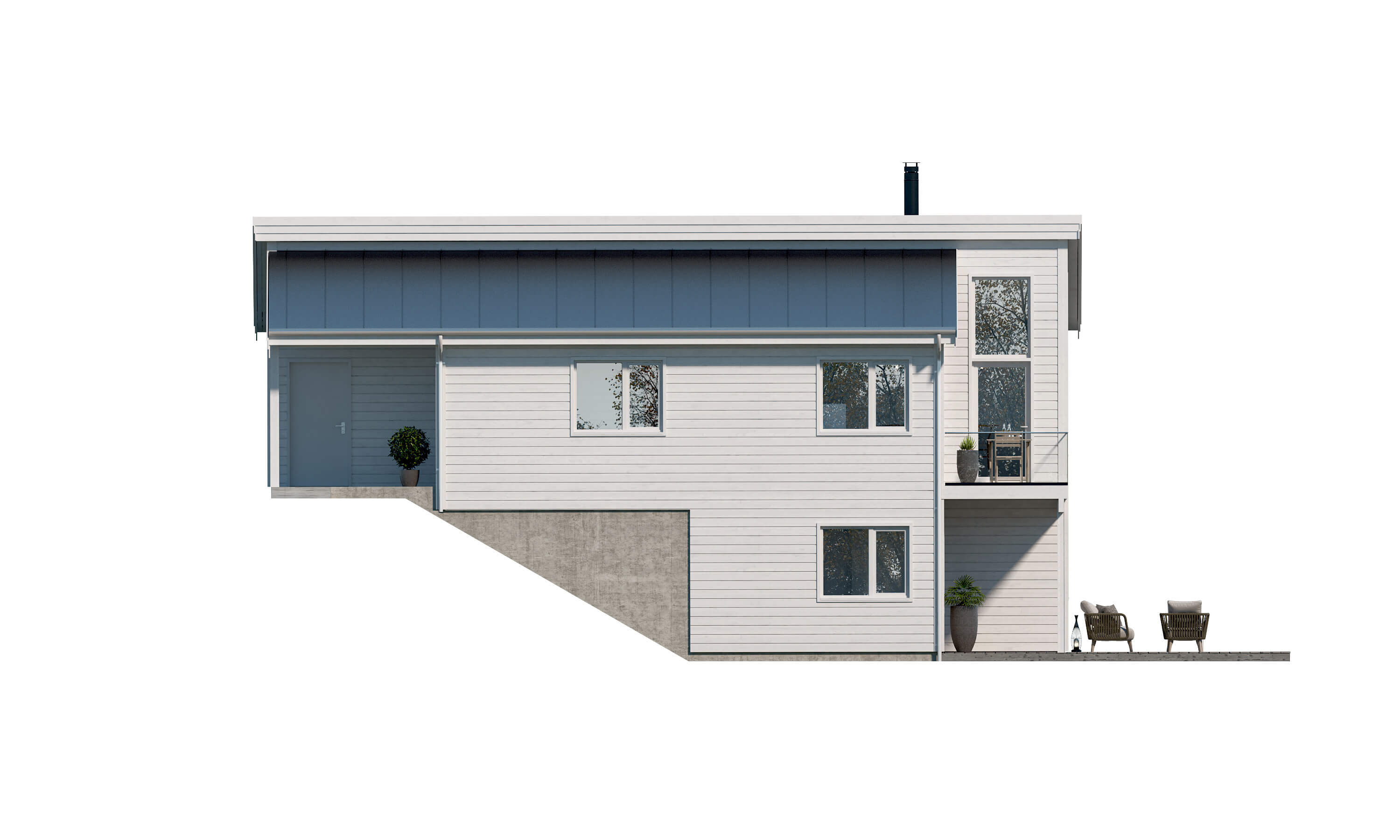 Store, spesielle vindusflater og stor takhøyde gir Giske et spennende utseende. Boligen passer perfekt på en smal, skrå tomt, og gir med sin slanke bygningskropp et moderne og stilrent uttrykk.