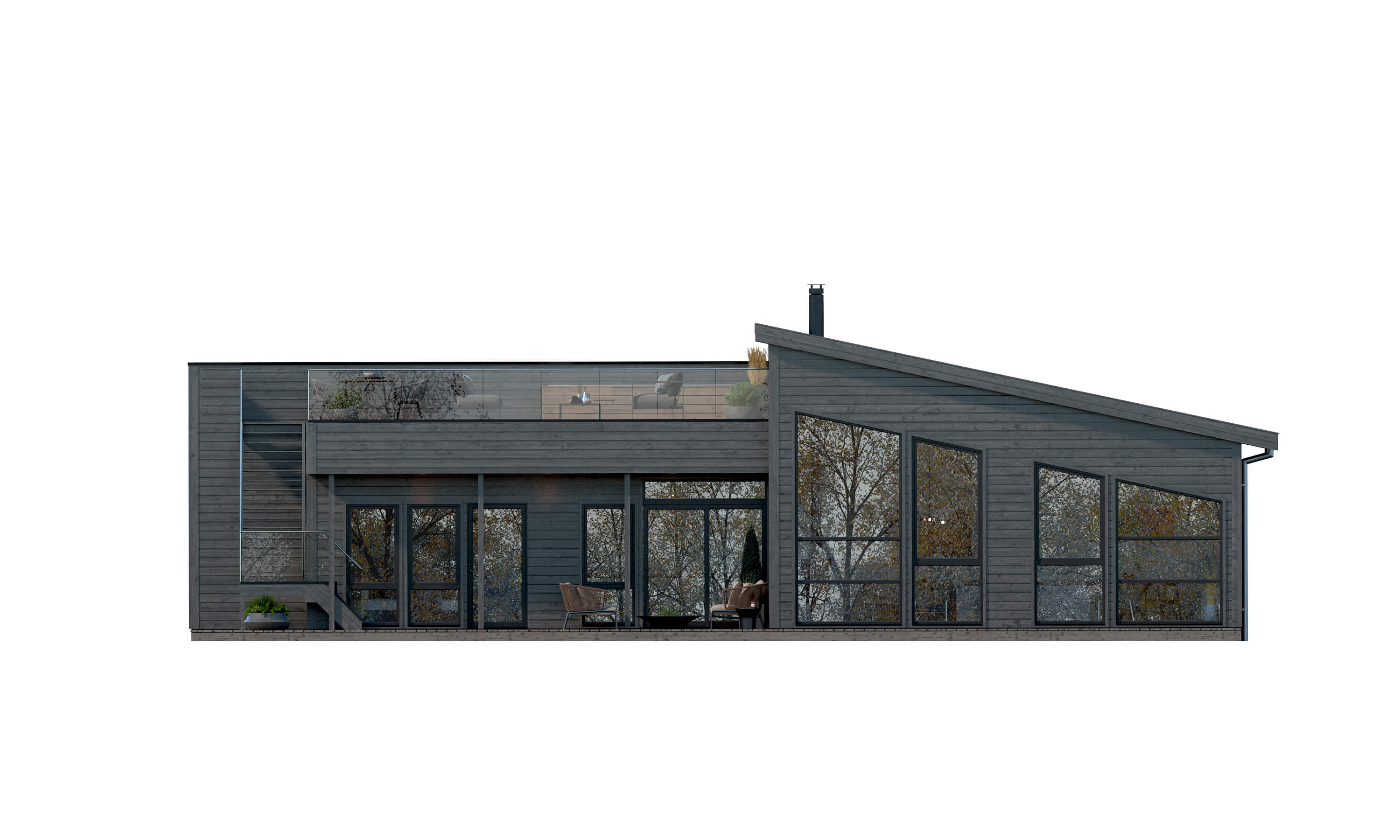 Vegsund har en arkitektur som fanger blikket – med sin utradisjonelle utforming og store takterrasse er dette en bolig som skiller seg ut. Her får du alle nødvendige funksjoner på ett plan, med tre store soverom, to bad og romslig oppbevaringsplass.