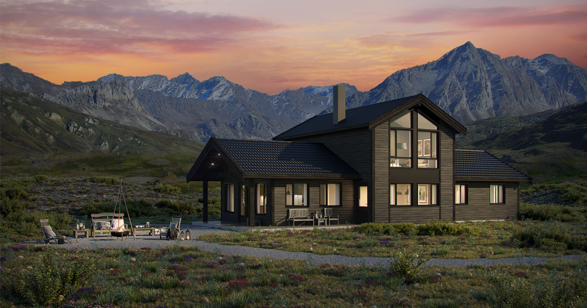 Hytten er tilpasset flate tomter og har alle fasiliteter samlet på hovedplanet. Med fem soverom kan du huse både venner og familie, med sine nesten 150m2 er