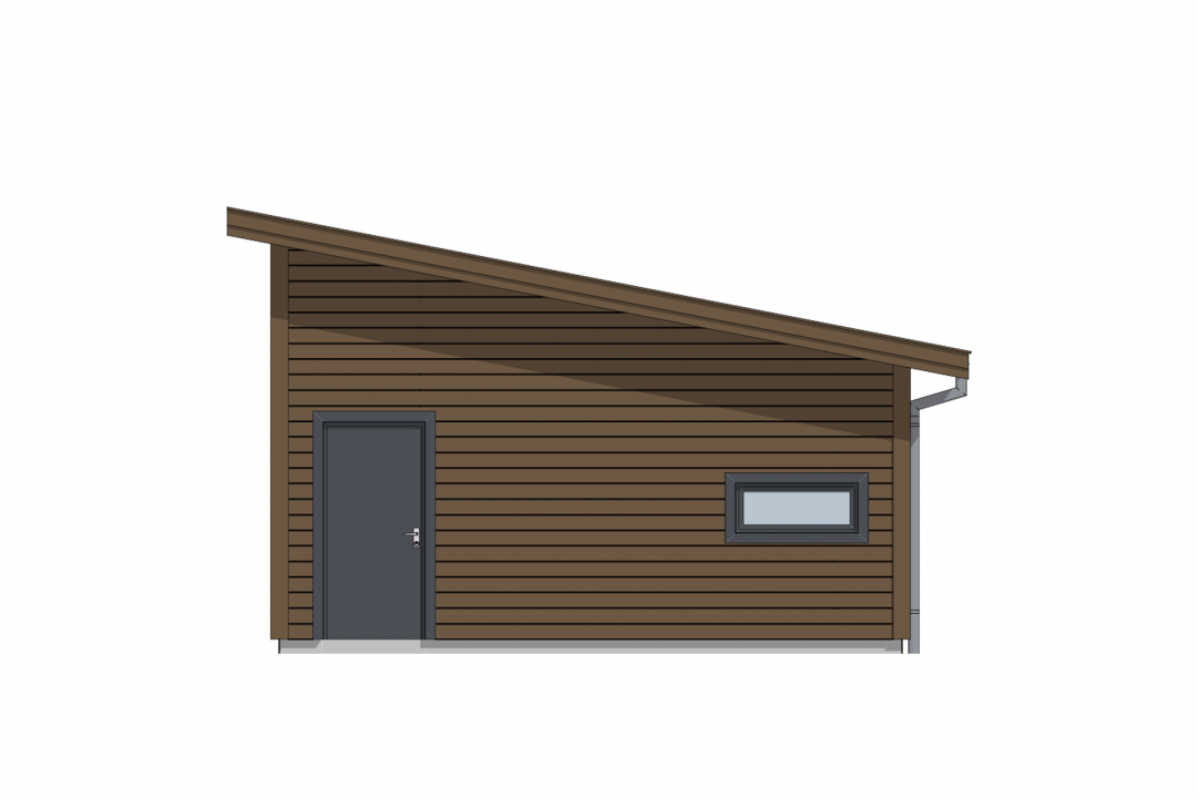 Bygget har en moderne fasade og står svært godt sammen med moderne boliger. Garasjen har moderne, smale vinduer som opprettholder et tidsriktig ytre samtidig som de slipper lys inn i garasjerommet. En dør er plassert på nordveggen, for at du enkelt kan gå inn og ut av garasjen uten å måtte åpne portene.