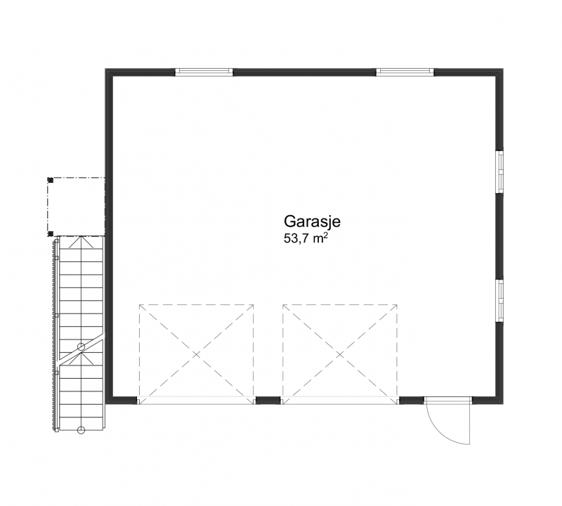 Garasjerommet er på nesten 54m2 og lar deg parkere to privatbiler, samt oppbevare familiens sykler, sportsutstyr og annet som du ønsker å lagre i garasjen. En utvendig trapp fører deg opp til garasjeloftet, et romslig loft som gjerne kan benyttes som stue, hobbyrom eller til oppbevaring og lager.